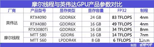 例如MTT S3000的FP32算力为15.2TFLOPS,英伟达A100为19.5TFLOP,相当于达到了80%的A100性能;桌面级MTT S80显卡的纸面性能相当于英伟达RTX3060。