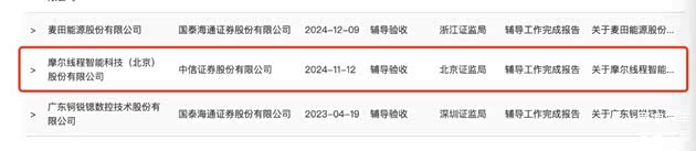 近日,中国证监会政务服务平台消息显示,摩尔线程智能科技(北京)股份有限公司(简称“摩尔线程”)IPO辅导状态已变更为“辅导验收”,辅导机构为中信证券股份有限公司,这意味着其距离上市又进一步。
