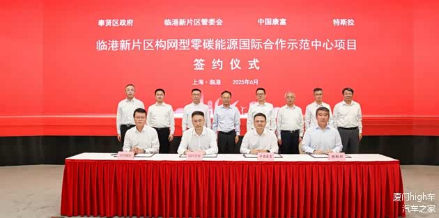 2025年6月20日下午,上海市临港新片区管委会、上海市奉贤区人民政府、中国康富国际租赁股份有限公司(以下简称“中国康富”)、特斯拉(上海)有限公司(以下简称“特斯拉”)围绕构网型零碳能源国际合作示范中心项目举办签约仪式。本次项目签约标志着总投资40亿元的吉瓦时级电网侧独立储能电站及配套重大项目正式落户临港。上海市委常委、临港新片区党工委书记、管委会主任陈金山出席并见证签约。