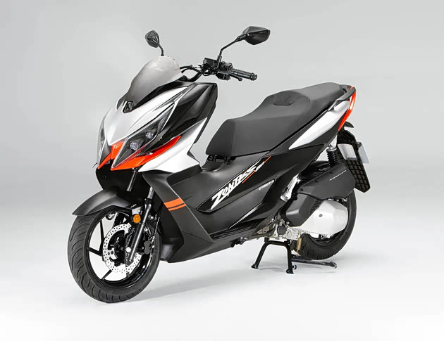 这是一款运动踏板摩托,整体外形依然是升仕惯用的时尚激进造型,前脸有极强的战斗色彩,车身线条也极为动感很有家族特色。