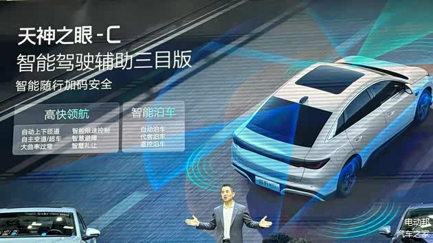 海豹06EV全系标配「天神之眼C」三目版智能驾驶辅助系统,依托5R12V传感器阵列与先进算法,可实现高快领航、自动泊车、AEB自动紧急制动等20余项功能。