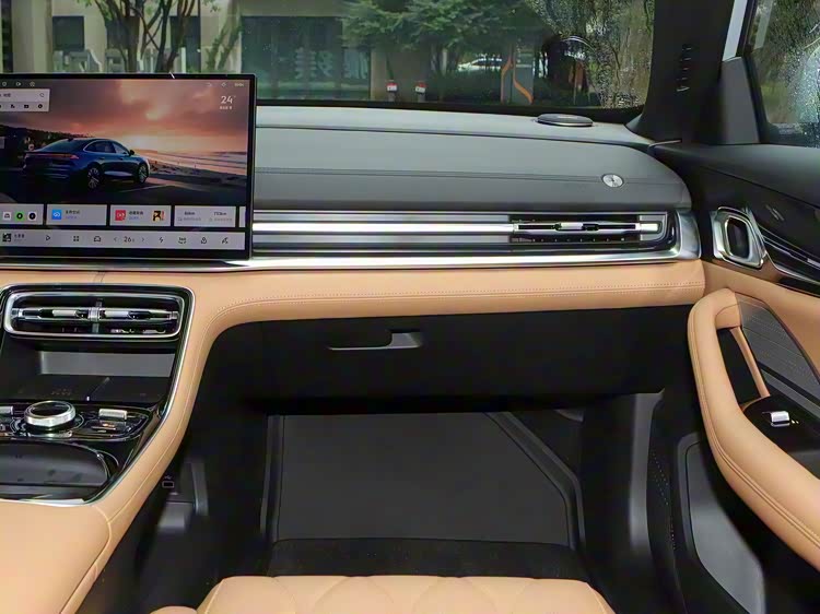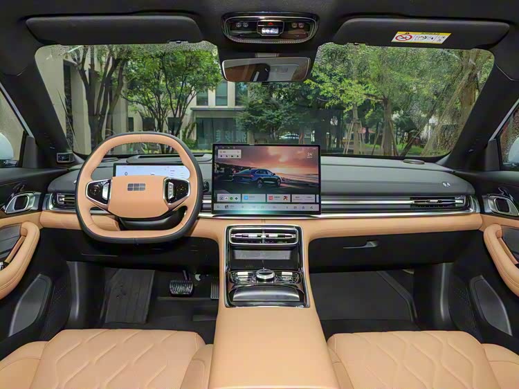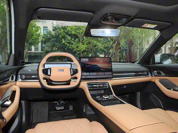 内饰采用环抱式座舱设计,顶层皮革软包、中层木纹饰板与底层哑光金属的组合,兼具豪华感与科技感。中控台采用T型布局,15.4英寸悬浮屏与8.8英寸液晶仪表构成数字座舱核心,搭载银河Flyme Auto智能座舱系统,支持语音盲操、四音区交互,并集成主流应用,兼容多系统互联。