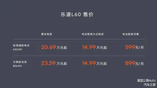 另外,蔚来乐道L60还支持租电方案,其标准续航电池租电费用为599元/月,长续航电池租电费用为899元/月,在选择租电方案的话,购买裸车费用低至14.99万元,后续选择租用标准续航电池,一年费用也就7000元出头,这样一来电池常用常新的情况下,购入成本也不会很高,可以缓解用户的压力。反观,极氪7X则并不支持租电方案购买,并且蔚来乐道L60依托于蔚来汽车完善的换电站体系,还具备换电能力,其补能方式和效率也更为出色。