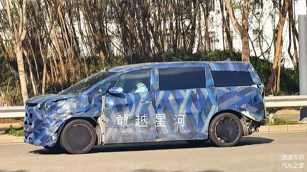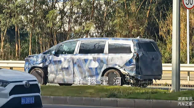 我们可以看到此次曝光的腾势D9L的车身还有比较严实的伪装层覆盖,它 的车身也明显比在售的D9长一些。在车的前脸的部分,新车所爆出的细节并不多,它的前大灯的位置还未曝光,估计和D9大差不大。腾势可能会在D9L的前进气格栅上小试牛刀,它估计会继续采用大尺寸的进气格栅,前脸的底部包围的细节暂时还未曝光出来。