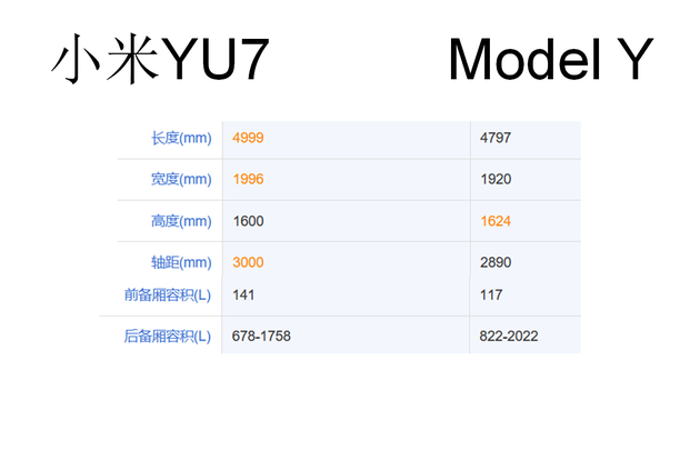 同样是豪华纯电SUV, 小米YU7与Model Y的区别有多大呢?