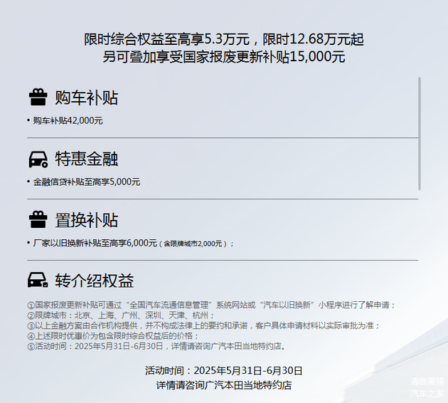 目前,购买雅阁还有非常诱人的优惠政策。雅阁插混系列可享至高 6.6 万综合权益,运动系列享至高 5.3 万综合权益,限时 12.68 万起售,还能叠加国家报废更新补贴 1.5 万。