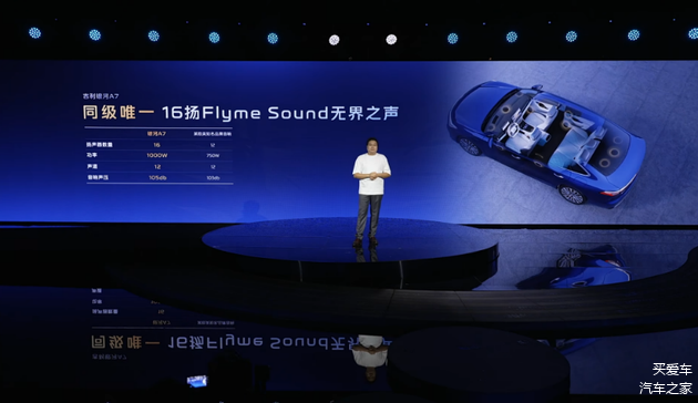 新车搭载银河Flyme Auto智能座舱系统,界面采用便捷的卡片式信息布局(widget大卡)。首发吉利定制高德810地图导航,提供可视化车道引导、巡航红绿灯提示等功能。语音交互助手提升操作便利性。音响系统为Flyme Sound无界之声定制16扬声器,具备7.1立体环绕声效和1000w功放,含头枕音响。支持Hicar、Carlink、Flyme Link及Carplay(后续OTA)等多种互联方案。