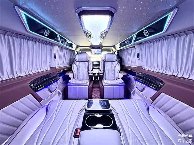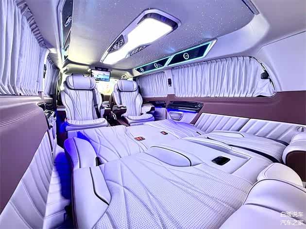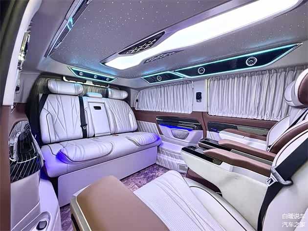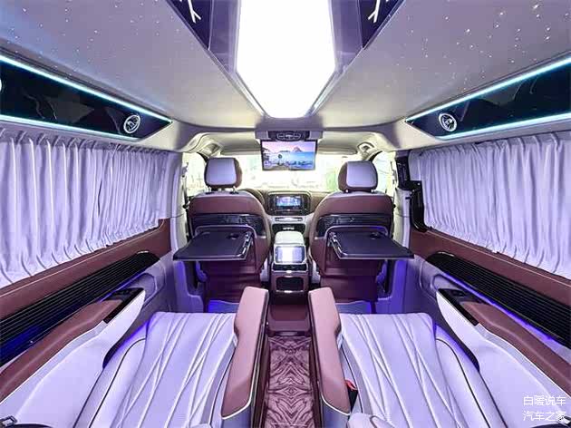 大家好我是白暖,采用奔驰家族式设计语言,独特的包围搭配新款镀铬中网,三杠LED大灯犀利有神,引擎盖上的立标提升了车辆的奢华感。车身线条流畅舒展,长轴版车身尺寸为5370mm×1928mm×1880mm,轴距达3430mm;标轴版车身尺寸为5140mm×1928mm×1880mm,轴距为3200mm。配备电动折叠后视镜、双侧电动防夹滑门及一键开启式电动尾门,方便乘客上下车。