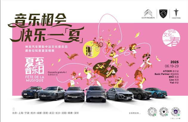 六月的武汉空气已氤氲着暑热,一场跨越国界的艺术风暴正在蓄势。6月25日、28日及29日,第17届中法文化之春夏至音乐日将登陆江城,以法兰西音符注解荆楚盛夏。本届音乐日神龙汽车携旗下三大品牌——示界、东风雪铁龙与东风标致深度联动,神龙汽车员工独立创作的主题歌曲《示界之名》MV也将正式发布预告。当法系工业美学碰撞东方音乐律动,这场免费音乐盛宴,将用轮胎的轨迹与音符的跃动,重新定义法式精致生活的当代表达。