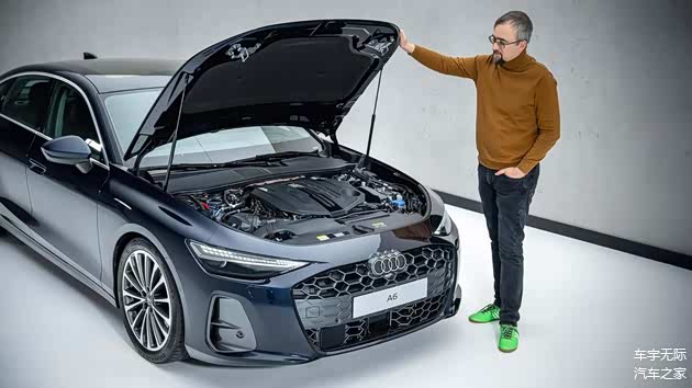 与此同时,奥迪A6的运动感还表现在了许多面板、线条的塑造当中。像车头引擎盖上就有多段运动线条,其不仅在于A柱延伸出来的锋利边缘,也在于呈V形靠拢两端下沉沟壑。