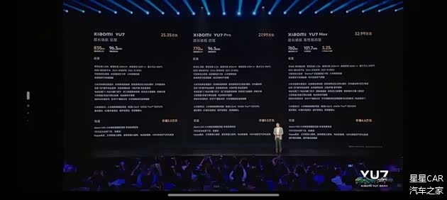 6月26日, 小米YU7正式上市,新车共推出三个版本,包含小米YU7后驱版、四驱版、以及高性能四驱版本,三款车的价格分别为25.35万、27.99万以及32.99万。