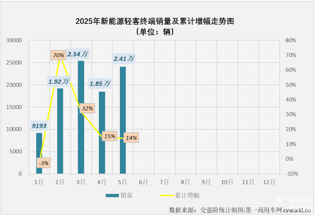2025年5月份,新能源轻客市场重获增长,同比增长了12%;5月过后,今年新能源轻客市场同比增长14%,增量已超万辆。6月份,新能源轻客市场能否开启新一轮的连增?请与本站一起持续关注。