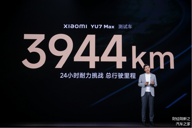 雷军在发布会上宣布,经中汽中心的权威见证,小米YU7以行驶3944公里的成绩,刷新了纯电车24小时耐力挑战的世界纪录,超越奔驰、保时捷,成为首款登顶榜单的中国车。此前奔驰和保时捷的电车也进行过类似挑战,其中保时捷Taycan原型车在2019年完成了3425km的总行驶里程,奔驰纯电CLA原型车在2024年完成了3717km的总行驶里程。