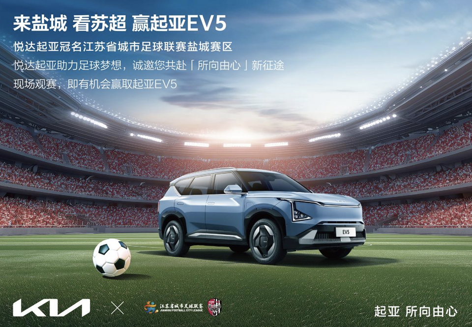 这不巧了嘛~之前的村超,现在的苏超,但今年的苏超更“魔性”,今夏顶流。悦达起亚正式成为“2025江苏省城市足球联赛盐城赛区冠名商”,并冠名赞助“苏超”盐城队,并且在接下来的主场比赛中,现场观赛的球迷,有机会赢取起亚EV5。 有盐城的兄弟们嘛?据说你们那嘎哒成绩不错啊。实际上,铁杆球迷都知道,起亚很早就是国际足联的官方合作伙伴,许多个夏天,当我们熬夜看球时,场边的广告牌都是起亚。要说玩体育,起亚行,NBA也有,澳网也有,所以这次冠名苏超,而且还是“主场”,这不巧了嘛您说