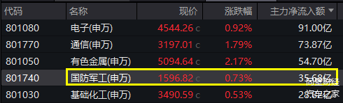 周五(6月27日),国防军工板块继续活跃,连续第5日上涨。收盘行业涨幅、主力净流入额双双跻身全行业(申万一级)前五。当日沪指跌0.7%,创指小幅收涨0.47%。