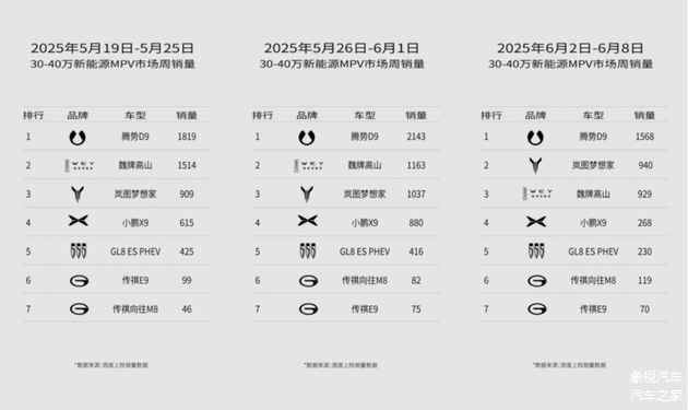 全新高山在豪华MPV市场持续领跑的同时,全新蓝山于新能源SUV市场的占有率也在稳步提升,据2025年6月16日-6月22日25-40万级新能源六/七座SUV周销量榜单显示,全新蓝山以1052辆的数据位列第三,稳居细分市场销量第一梯队。