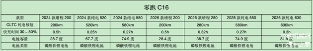 2026款零跑C16的纯电长续航版,官方给到的CLTC续航是630公里,属于目前同级里相当能打的水平。
