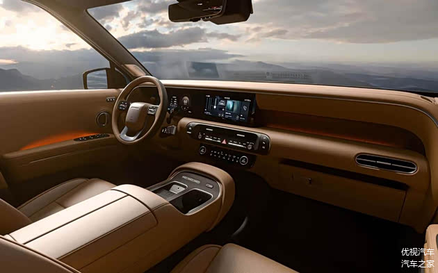 内饰标配双12.3英寸连屏设计,中高配会升级为双14.3英寸连屏以及HUD抬头显示的组合。屏幕下方保留了大量物理按键,方便操作娱乐系统、空调系统以及驾驶模式等,同时也换装了按键式换挡机构。