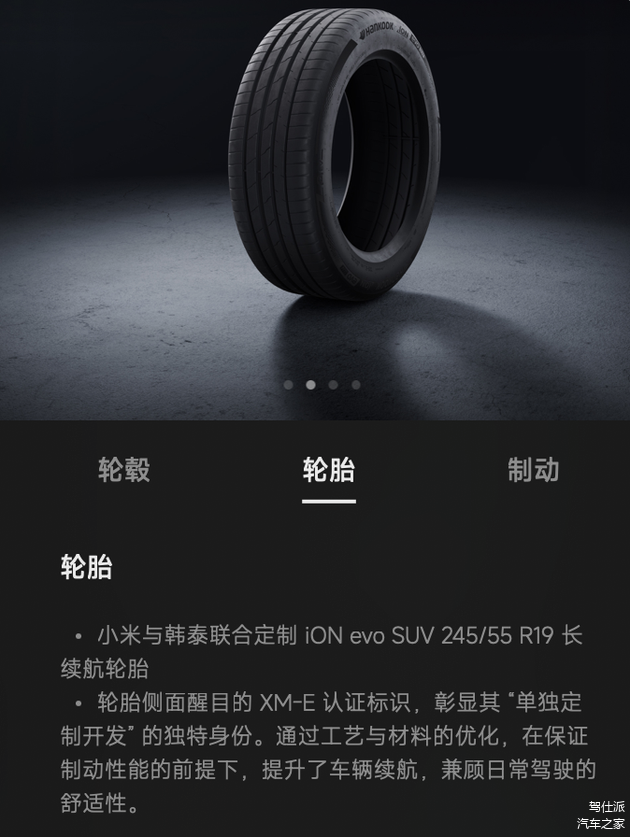 另外,YU7上标配的这套19英寸轮胎,全部是性能比较中庸的韩泰轮胎,这点相较SU7标配的米其林轮胎,某种意义上已经算是简配了。即便是价值6000元的20英寸轮胎,依然是韩泰品牌。