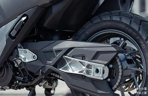 这种设定对于跨界车型来说比较一般,因为参考竞品表现,后中置减震器和独立后摇臂才值得追捧,毕竟它会让ADV踏板车更具功能性,也会更适合走非铺装路面。