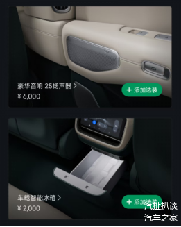 挑选完这些颜值选装后,小米YU7还额外提供6000元25扬声器的豪华音响配置,对于追求更高影音体验的用户来说,这6000元的选配也算值得。对于部分家庭用户来说,2000元选购一个车载智能冰箱,以后带孩子出门热个奶或是夏天喝个冷饮,这2000元的冰箱不容错过。