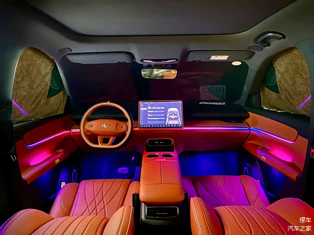 氛围感方面,全车有16个扬声器,采用7.1.4的布局,并且标配天空声道和K歌功能,但是并没有采用品牌音响,个人体验过后感觉,在默认状态下,它的音响效果并不是非常的理想,但可以在车辆设置中和音乐软件中根据自己喜好调整,调整过后感觉还是比较的均衡,只要不是专业人士,日常使用则是没有问题的。除此之外它还有256色的氛围灯,使内饰的高级感加以点缀。顶配版车型还支持灯光投影,据说可以看电影,但是否好用我们就不得而知了,车主朋友们可以发表一下使用感受。