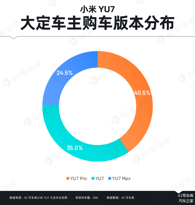 小米 YU7 Pro 版是受访用户选择最多的版本,占比达 40.5%;其次是 YU7 标准版(35%)和 YU7 Max 版(24.5%)。