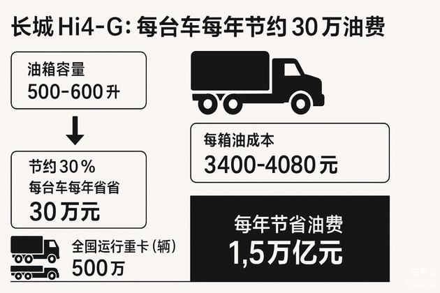 这不是概念,也不是面子,这是纯粹的现金流。长城Hi4‑G的真正价值,并不在一款车上,而在于它能为全球商用车行业,节省一半燃料开支。