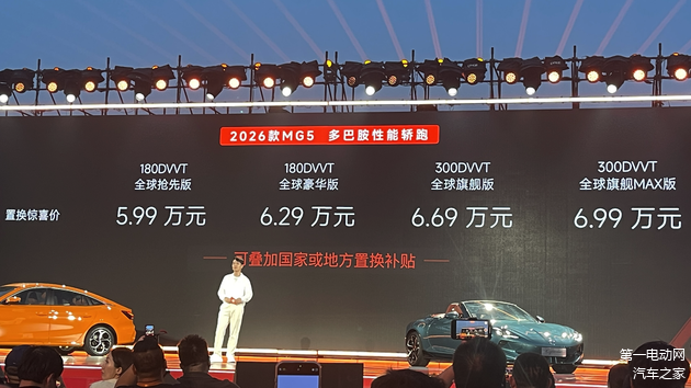 6月30日,上汽MG名爵旗下2款年度改款车型正式上市,其中2026款MG5共推出4款车型,指导价8.19万-9.89万元,2026款 MG Cyberster共推出3款车型,指导价31.98-35.98万元,同时按照规划,全新MG4 EV预计在8月初预售,9月初上市。