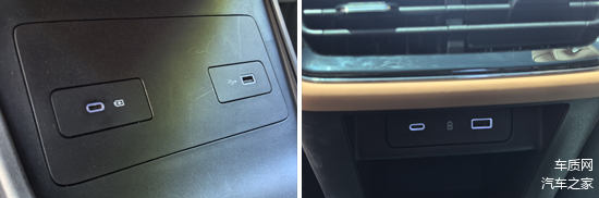 在车内USB接口方面,评测车前排配备1个Type-A接口和1个Type-C接口,后排同样配备了1个Type-A接口和1个Type-C接口,前后排接口分别集中在中控台下方、后排空调出风口下方。遗憾的是,车内并未提供车载电源。