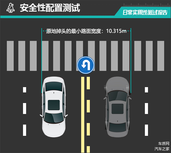 车辆在日常使用中,经常会遇到转弯或者掉头的情况,这个时候车辆的转向灵活性就显得非常重要了。了解爱车在原地掉头时所需的路面宽度,能做到心中有数,从而避免剐蹭等危险情况的发生。经过实测,评测车原地掉头的最小路面宽度为10.315m,表现处于同级别中上游水平。