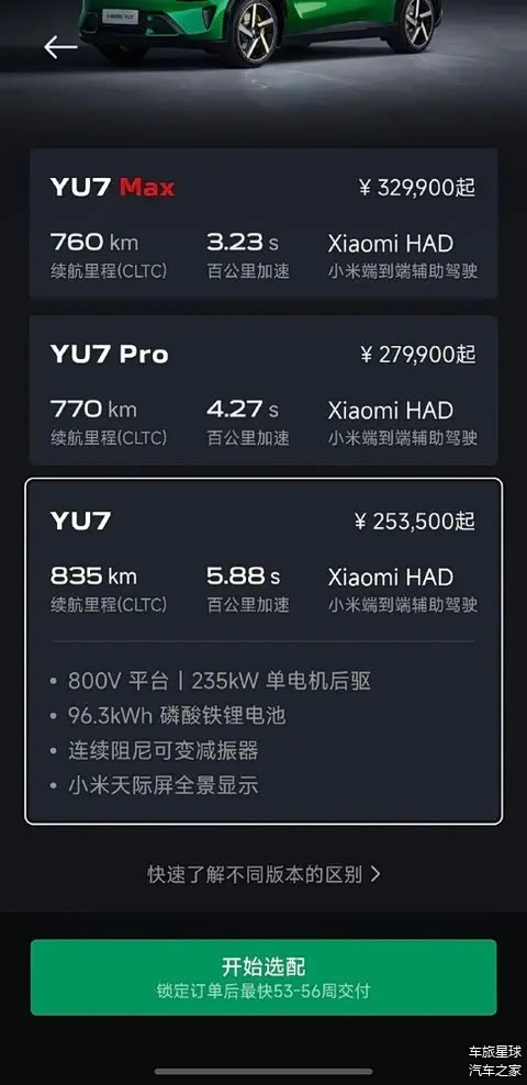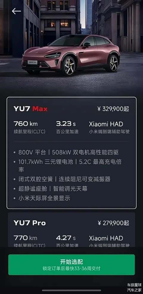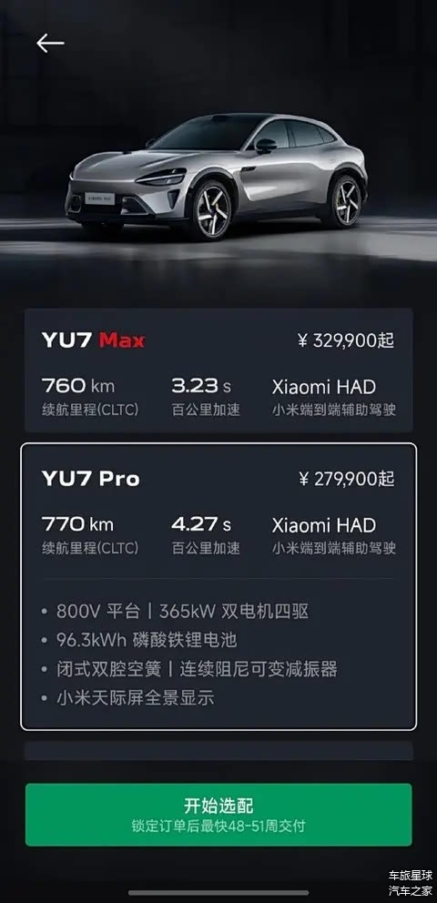 这份交付时间表,无疑将小米YU7推向了行业“异类”的位置。53-56周(约12-13个月)的标准版、48-51周(约11-12个月)的Pro版、33-36周(约7.5-8.5个月)的Max版,这样的周期长度远超市场普遍认知。