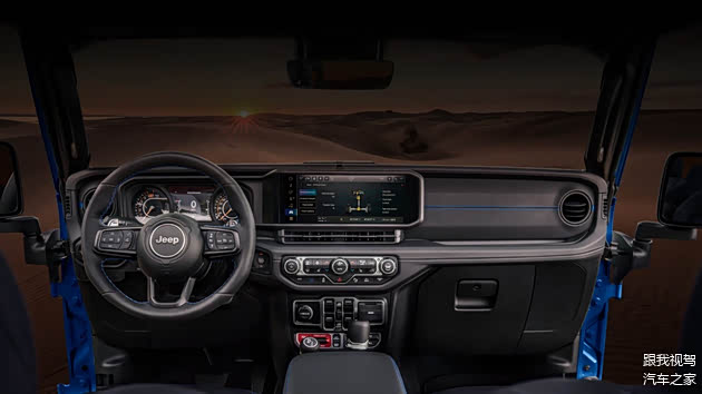 进入车内,新车仍然配备了可拆卸式的车顶,复杂而硬朗的中控台保留了大量物理按钮,强化了越野的气质。配置方面,新车搭载12.3英寸中控屏,具备手机互联、语音控制、车联网、4G WIFI等功能,科技配置以实用为主。此外,新车还提供了倒车影像、全速自适应巡航、前方碰撞预警等功能,提升了安全性与便捷性。