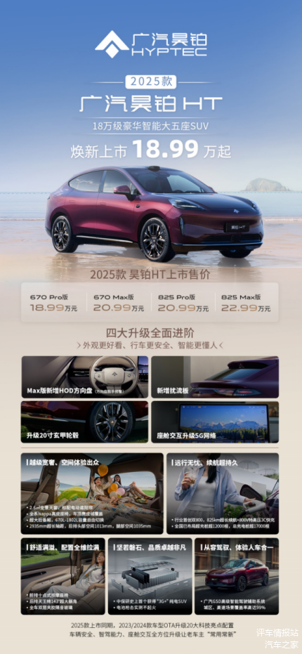 值得关注的是,今天(7月3日)2025款焕新上市的昊铂HT,在配置上实现了再度升级。MAX版新增HOD电容感应方向盘,能在0.5秒内触发三级预警,实时监测驾驶安全;新增的扰流板不仅让整车造型更具动感,还优化了风阻系数,高速行驶时稳定性更佳,能耗表现也更出色。如果你近期有购车打算,不妨亲自去试驾昊铂HT,相信它会给你带来意想不到的驾乘体验。