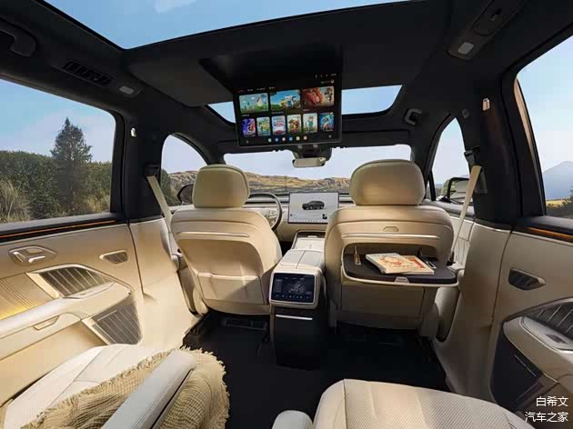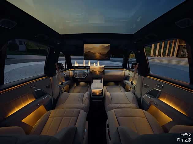 官方释出的内饰照片已经足够说明一切:三排六座布局,二排带腿托、航空头枕,三排坐垫厚实,车内四屏联动,全车氛围灯与NAPPA皮座椅组合,明确对标理想L8与问界M8,而非低端家庭市场。
