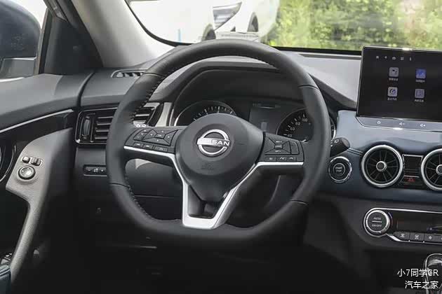 新车中控台区域搭载了三幅式平底方向盘、5英寸彩色屏组合仪表、12.3英寸悬浮式中控屏。