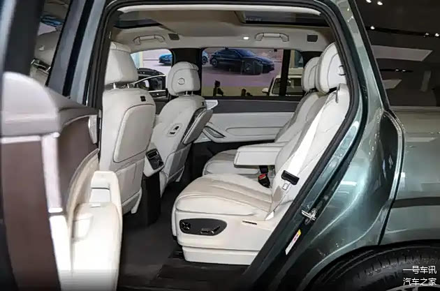 车辆内部采用了2+2+2的六个座位设计,并完全由真皮材料覆盖。从实际的乘坐体验来看,甚至第三排座椅也具有相对厚重的内部填充,同时纵向尺寸的宽裕也提高了乘坐的舒适度。车辆的内部配备了分段设计的全景天窗,以确保前排和后排乘客的头顶区域既明亮又宽敞。虽然后备箱的容量是351L,但通过调整后排座椅,其容量可以增加到1140L,以满足日常行李的装载需求。在动力配置方面,腾势N9 DM是基于易三方平台构建的,它采用了2.0T的混合动力系统,由2.0T发动机和前后的三个电机组成。