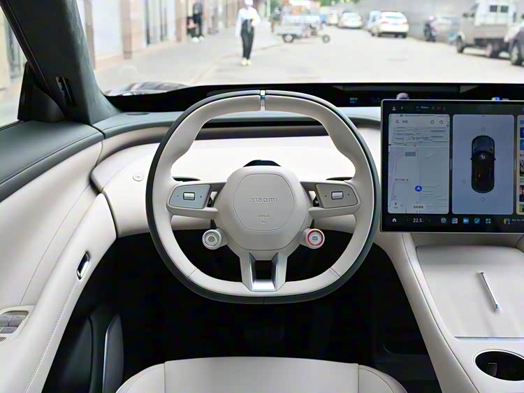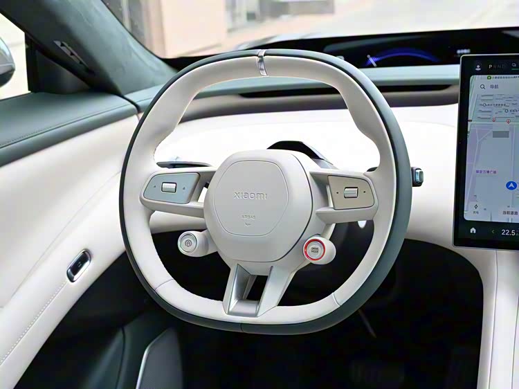 YU7车内座舱采用环抱式布局,主副驾之间的功能分区更为清晰,座舱中控区域取消实体挡把,功能整合在触控系统和方向盘两侧拨杆中,释放前排储物空间。前排标配三块Mini LED联屏,横向总长度达到1.1米,屏幕亮度峰值为1200nits,配合HUD系统,实现较完整的驾驶信息分布。