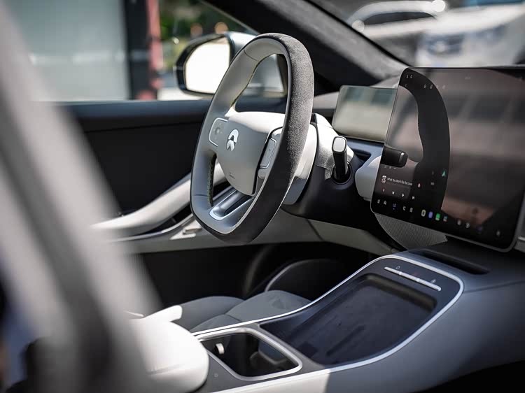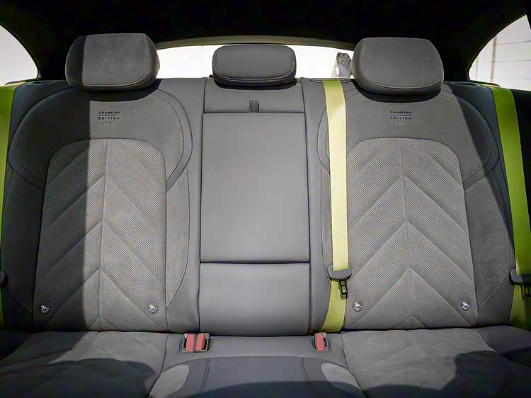 打开车门,座舱内的竞技美学进一步升华。内饰以灰色基调为主体,融入竞速绿撞色缝线与同色安全带,内外色彩语言一气呵成。方向盘包裹Alcantara麂皮质感材质,提供细腻且防滑的握持体验;座椅及顶棚则采用Microfiber超纤绒材质,触感高级且视觉统一。最动人的细节藏在座椅头枕——压印着“NIO Champion Edition 2015”专属标识,将十年前的荣耀悄然镌刻于日常驾乘中。每一处用料的考究,都让纪念版的独特身份在细节中自然流淌。