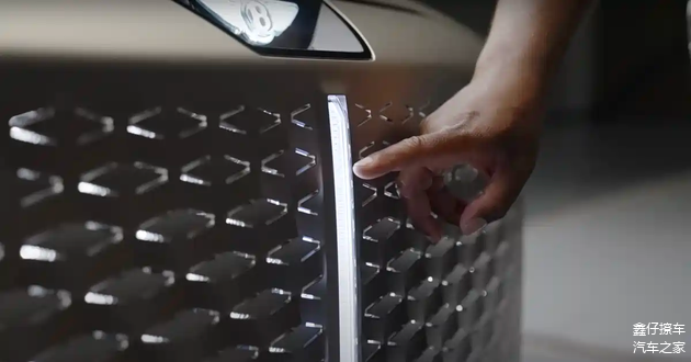 EXP 15前脸整体向视觉识别与空气动力表现倾斜。大尺寸前格栅采用密集分布的菱形格点设计,内部集成高密度LED光源,取消传统机械进气结构,强化整车电动属性识别。格栅中央垂直光源替代原镀铬饰条,构建更具未来感的点亮逻辑。