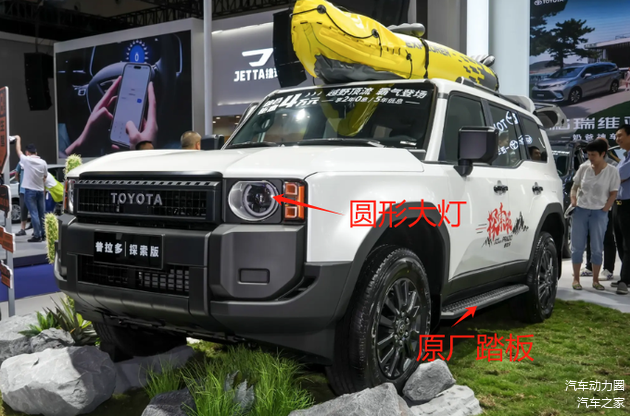 而且这一次不仅价格大幅度下滑,配置方面也得到了明显提升。从车头部分来看,我们能够明显发现这款普拉多探索版其实就是采用低配车型进行升级的。道理很简单,你看采用的是圆灯设计,而中高配丰田普拉多是方灯造型。