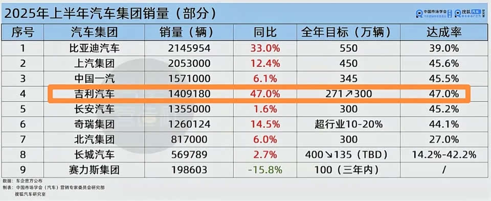 比亚迪卖出214万辆,吉利卖出140.9万辆,奇瑞卖出126万辆。