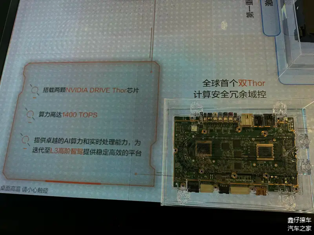计算平台为全球首次在量产车型中集成双NVIDIA DRIVE Thor芯片,整车AI算力达到1400TOPS,支撑高阶感知融合与端到端路径规划能力。整体系统为后续支持城区辅助驾驶、代客泊车等功能提供技术基础。