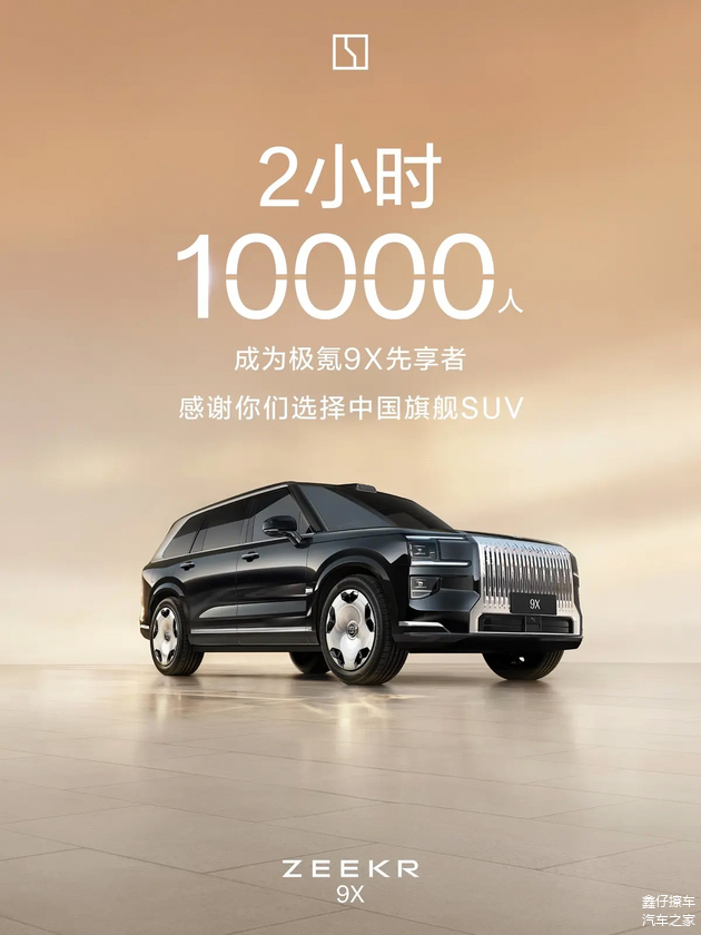极氪汽车近日公布了旗下全新SUV, 极氪9X的先享者计划阶段进展。据悉,该计划开启2小时内已有超过万人参与,用户将获得优先试驾、优先品鉴及优先交付等权益,新车将于今年8月底的成都车展开启预售。作为极氪首款基于浩瀚-S架构打造的混动SUV,极氪9X在设计、空间、座舱智能、动力系统及续航表现等多个维度呈现出明显升级。