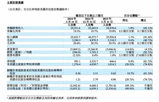 反映到经营层面的表现是,直至2025年第一季度,理想虽然实现营收259.3亿元,同比微增1.1%,调整后净利润却同比下滑了20%。值得警惕的是,这已是理想连续第二个季度收入增幅跌破两位数。