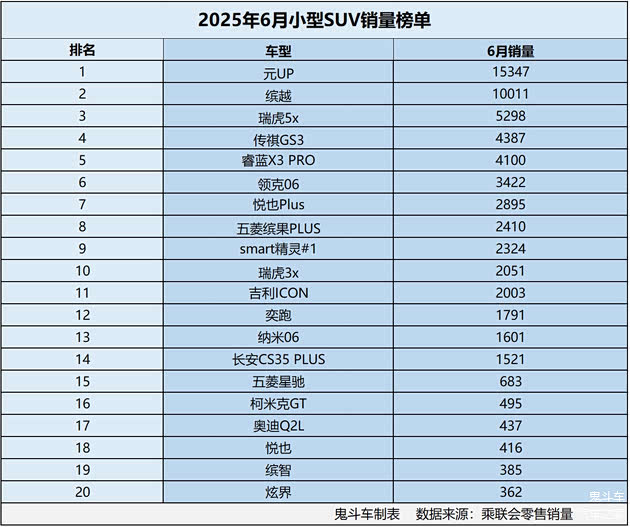 口说无凭,有数据为证,最近,乘联会发布6月车市销量数据,鬼哥根据小型SUV市场零售销量数据整理出排名前二十榜单,结果发现,这一榜单上,仅有两款车型销量过万,有些老牌传统小型SUV的销量仅为三位数。接下来,看看具体的车型表现。