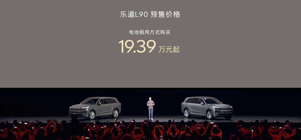 乐道L90发布预售价,租电baas版预售价19.39万元,整车购买预售价27.99万元。