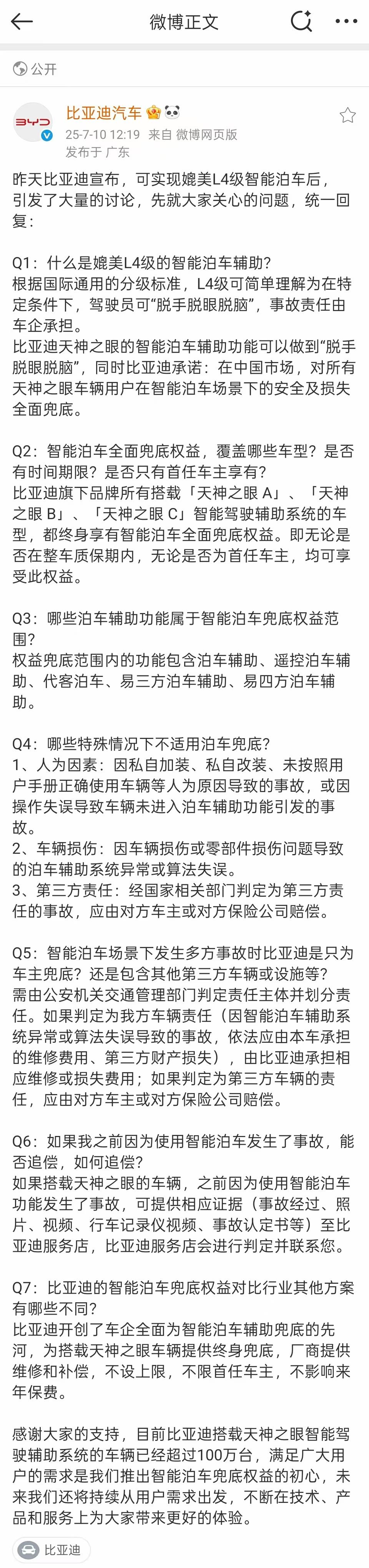 在比亚迪承诺为智能泊车兜底的同时,还即将进行天神之眼史上最大规模的智驾OTA。本次天神之眼OTA升级全面覆盖泊车、行车、安全三大板块十余项功能,涉及天神之眼A/B/C三大平台多款车型。泊车方面,天神之眼新增三速泊车、车头泊入、偏置泊车、窄车位泊车自动收后视镜等功能,并优化了悬空障碍物识别功能,智能泊车又快又准又安全;行车方面,天神之眼可覆盖更多场景,如环岛通行、复杂场景连续绕行、高速施工路段借应急车道绕行、窄路多把掉头等,还新增前车加塞场景下的闪灯鸣笛提醒功能;安全方面,天神之眼AEB功能可更轻松识别低矮障碍物,在夜间80km/h情况下可实现对两轮车侵入车道紧急刹停,120km/h触发AEB也能做到两段式舒适刹停,为用户带来更为安全舒适的用车体验。