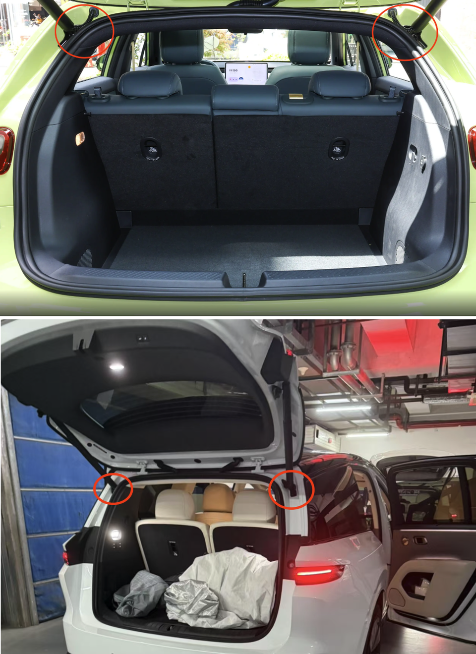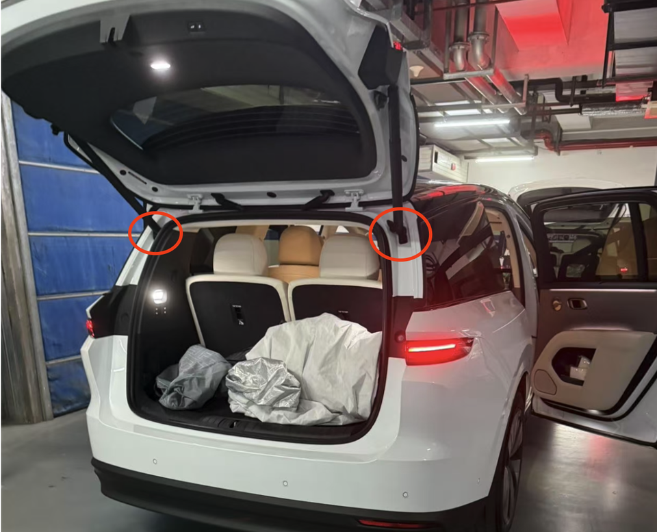 理想i8(下)尾箱右边的支撑杆是有线缆的,但左边没有,说明是单边电动的尾箱支撑杆,和小米YU7低配一样 再来看萤火虫(双边都有),和蔚来标准一样都是双边电动支撑杆 而萤火虫的价格基本是理想i8的三分之一 最近萤火虫越卖越好,提车周期基本一个月了 用料好不好大家能感受到的