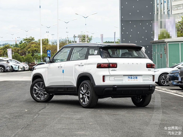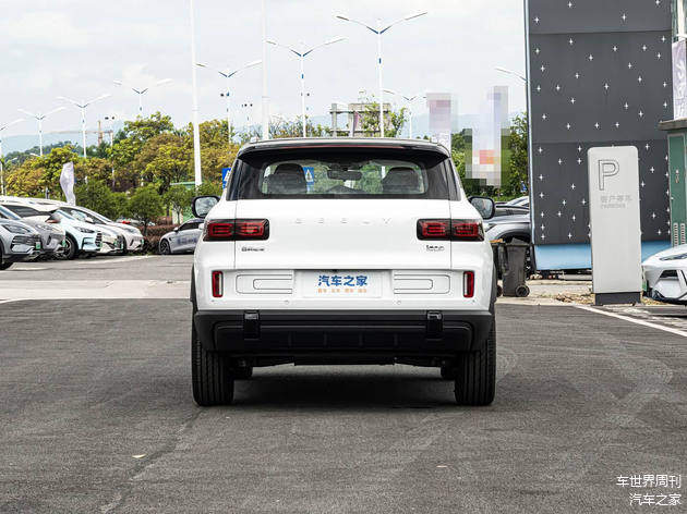 车尾部分,新款吉利ICON巧克力车顶配备有大尺寸扰流板和高位刹车灯,智能电动尾门没有缺席。矩形尾灯组采用熏黑处理,内部灯源点亮后也具备不错的视觉效果。此外,新车下包围也搭配了粗壮的黑色饰板,进一步增强了力量感。